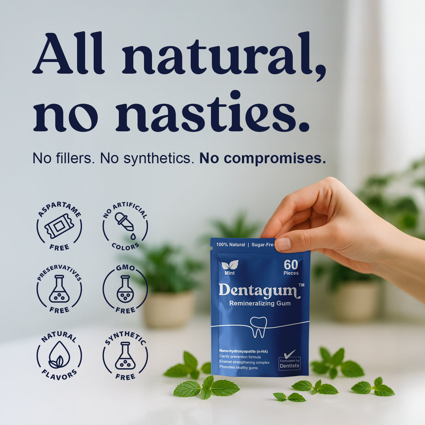 Dentagum's Remineralizing Chewing Gum supports oral health by helping to stop cavities and strengthen tooth enamel. Its unique formulation aids in remineralizing teeth, reducing sensitivity, and promoting a naturally whiter smile. Ideal for daily use, this gum complements your dental care routine by enhancing enamel resilience and maintaining overall mouth freshness.